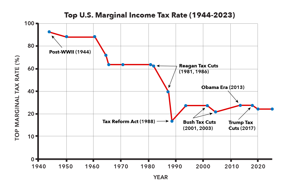 The U.S. once had a robust tax “immune system.” From the 1940s to the early 1980s, the top marginal income tax rate hovered around 70%—sometimes higher.
